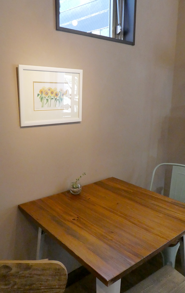 高橋さんの好きな花である、ひまわりの絵が飾られています
