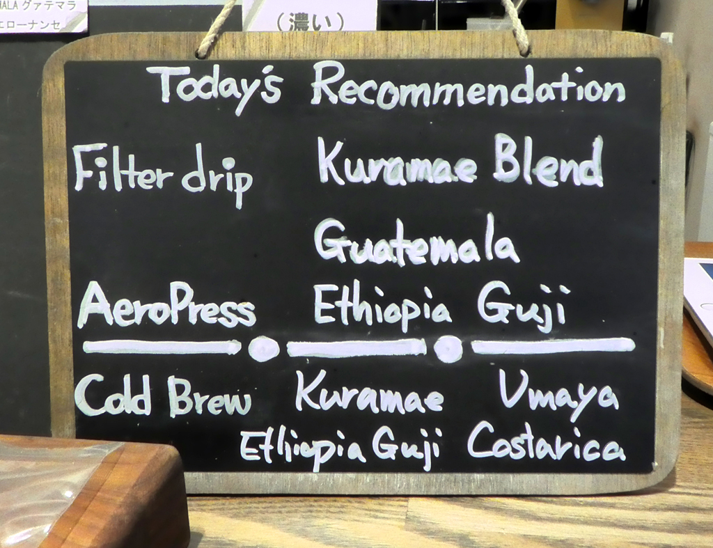 レジの横にある、小さいブラックボードに書き出している「今日のリコメンド(おすすめ)」は毎日変わります。これは在庫を調整するためではないんです。今日一番美味しいコーヒーを書き出しています。