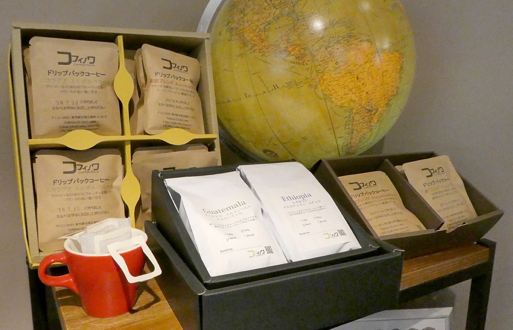 ネルドリップとサイフォンだけは一杯淹れるのにすごく時間がかかってしまうので、 やっていません(コフィノワさんの抽出方法は、エスプレッソマシン、ペーパードリップ、フレンチプレス、エアロプレス、ウォータードリップ)。 この二つは、カウンターで所作を見ながら楽しみますが、うちは客席が離れているのと、コーヒー豆の引き売りがメインなので。