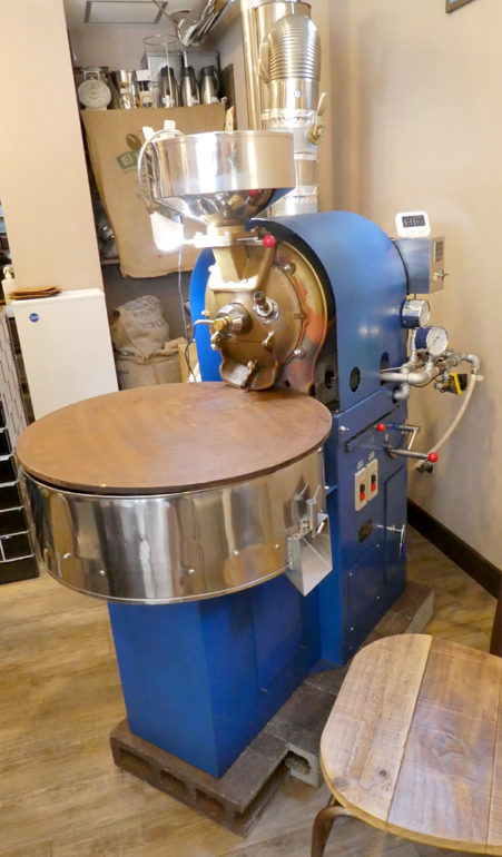 店内で焙煎をします。 使わないときには客席に早変わり。
