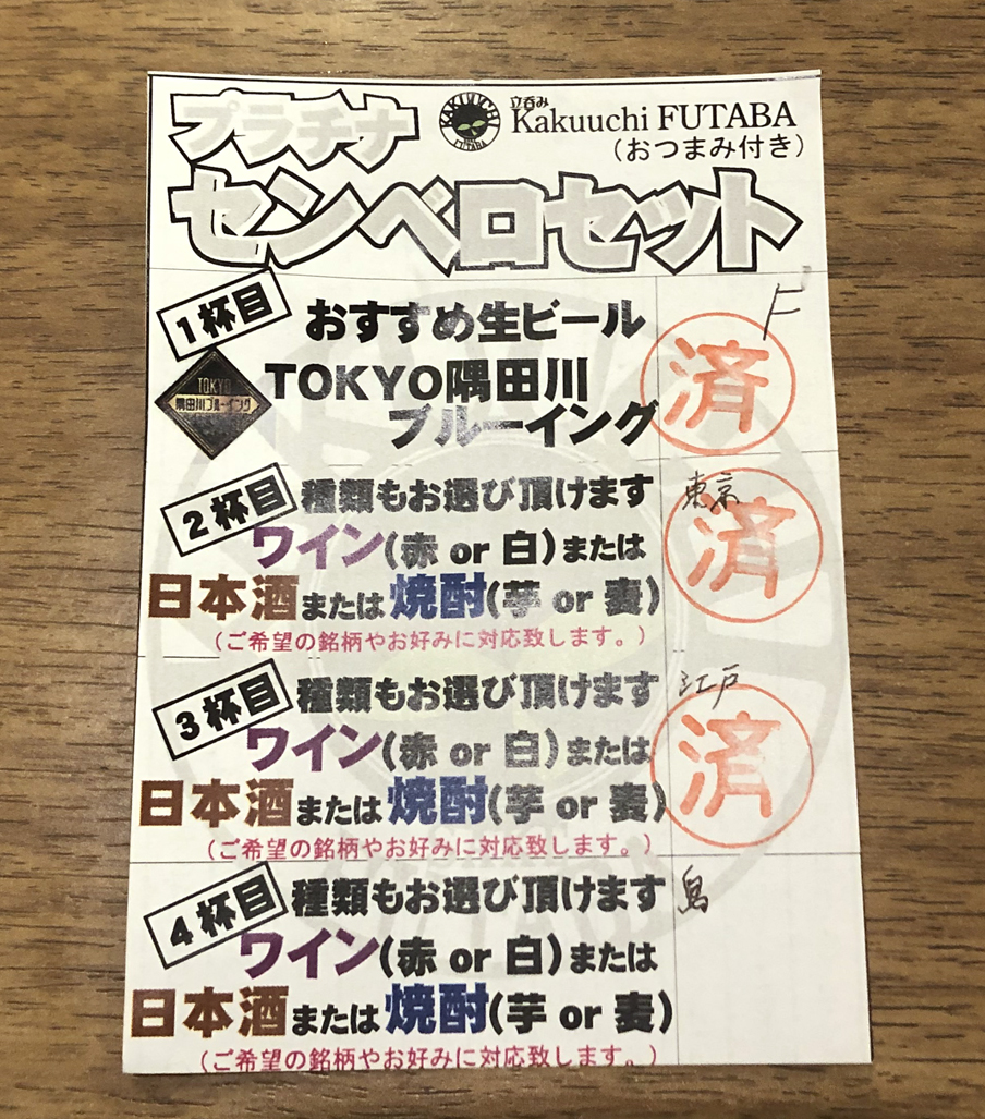 500円余計に払っていただければ(プラチナセンベロセット)、お好みのお酒が飲めるというシステムにしたんです。お酒好きの方にとっては、かなりリーズナブルに飲めるということですね。