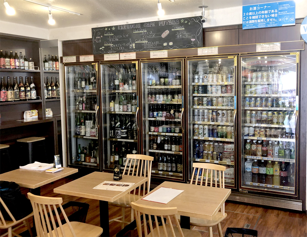 「角打ち」と言えば、酒屋さんの店内で立ち飲みできるスタイルのことを言いますが、フタバさんは最近になって座って飲めるようにリニューアルしました。