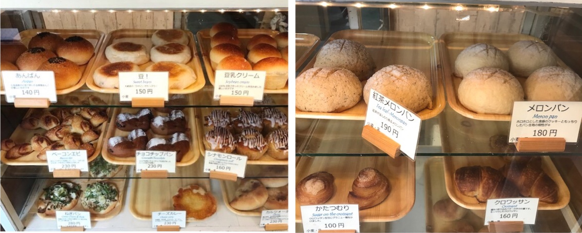 甘い菓子パン系が人気で、あんパンとかメロンパン。月曜・水曜日限定のシナモンロールも人気がありますね。それから、食パンやイギリスパンなども。1日にたくさんは焼けなくて数が限られてしまうので、午前中に無くなってしまうこともあります。