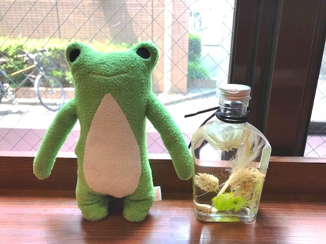 ワークショップで作った『foo..』さんのぬいぐるみ(左)と『花楽堂』さんのハーバリウム(右)