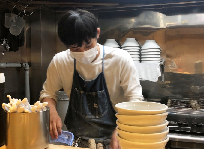 店主の木場本幸治さんは、『らーめん・つけめん いつ樹』(青梅市)、『らーめん 五ノ神製作所』(新宿区)出身で、前者は「鯛塩らーめん」「海老つけ麺」、後者は「海老リッチらーめん」「海老トマトらーめん」などのメニューで知られる有名店です。そのためか、蔵前に出店する際も海の幸を出汁のベースにしたラーメンを考案し、アサリをメインに、煮干しや昆布で出汁をとった「貝塩らーめん」を独自に開発したのでした。今ではこの味を求めて、地元はもとより各地からやって来るラーメン好きで連日賑わいを見せています。
