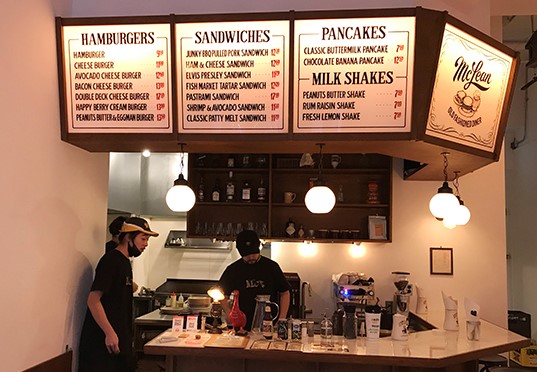下町ではすでに有名なグルメバーガーショップ『マクレーン』。 その2号店が2020年7月、蔵前にオープンしました。こちらは「McLean OLD FASHIONED DINER」と銘打っているように、ハンバーガーだけではなく、サンドイッチやライスプレート、スープやサラダ、パンケーキやデザートまで幅広くラインナップしているのが特徴です。